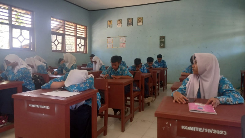Waikabubak (Humas) --- Memasuki hari ketiga pelaksanaan Penilaian Akhir Tahun (PAT) atau Sumatif Akhir Tahun Pelajaran 2023/2024, Dra. Rosdiana selaku Pengawas Madrasah Jenjang MTs lakukan monitoring dan evaluasi (Monev) di MTsN Sumba Barat, Selasa (04/06/2024). Pengawas memeriksa kesiapan panitia dan fasilitas ujian untuk memastikan bahwa prosedur pelaksanaan ujian berjalan sesuai dengan pedoman yang telah ditetapkan. Kedepannya hasil monev PAT dapat dijadikan sebagai bahan evaluasi dalam pengambilan kebijakan lebih lanjut terkait pelaksanaan PAT, validasi soal serta kelengkapan adminitrasi pada pelaksanaan ujian nantinya. Penilaian Akhir Tahun (PAT) atau Sumatif Akhir Tahun Pelajaran 2023/2024 dijadwalkan mulai tanggal 3-8 Juni 2024. Ujian diikuti oleh total 180 orang peserta didik MTsN Sumba Barat untuk kelas VII dan kelas VIII yang terbagi ke dalam tujuh tuangan.