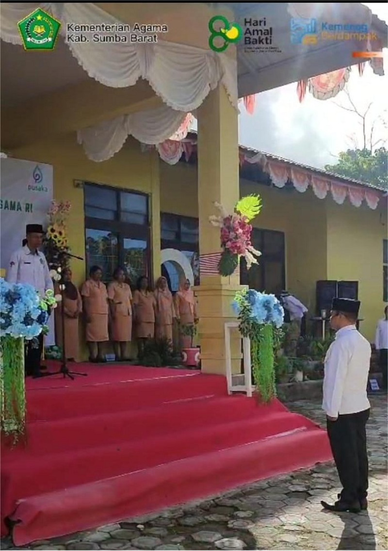 Waikabubak (Humas) --- Kantor Kementerian Agama Kabupaten Sumba Barat menggelar Upacara Peringatan Hari Amal Bakti (HAB) ke-80 Kementerian Agama Republik Indonesia, Sabtu, (03/01/2026). Hari Amal Bakti (HAB) Kemenag RI adalah peringatan tahunan yang jatuh pada tanggal 3 Januari untuk memperingati berdirinya Kemenag RI pada tahun 1946. Kepala Kantor Kementerian Agama Kabupaten Sumba Barat, Bulla Nggallu, bertindak selaku Pembina Upacara, diikuti oleh para pejabat dan staf lingkup Kantor Kemenag Sumba Barat, guru madrasah, dan penyuluh multi agama. Upacara yang dilangsungkan di depan Kantor Kementerian Agama Kabupaten Sumba Barat berlangsung dengan penuh kekhidmatan. Peringatan HAB ke-80 mengusung tema “Umat Rukun dan Sinergi, Indonesia Damai dan Maju.” Dalam amanat yang dibacakannya, Adib menyampaikan penegasan Menteri Agama bahwa kerukunan umat beragama bukan sekadar ketiadaan konflik, melainkan energi kebangsaan yang mampu mendorong kemajuan bangsa.