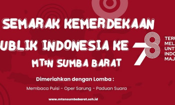 Waikabubak (Humas) --- MTs Negeri Sumba Barat telah menggelar berbagai kegiatan dalam rangka memeriahkan Peringatan HUT Kemerdekaan Republik Indonesia ke-78 Tahun 2023. Kegiatan dilaksanakan berupa lomba yang diikuti oleh peserta didik antara lain Lomba Visualisasi Puisi Kemerdekaan, Lomba Paduan Suara dan Lomba Estafet Sarung. Lomba...